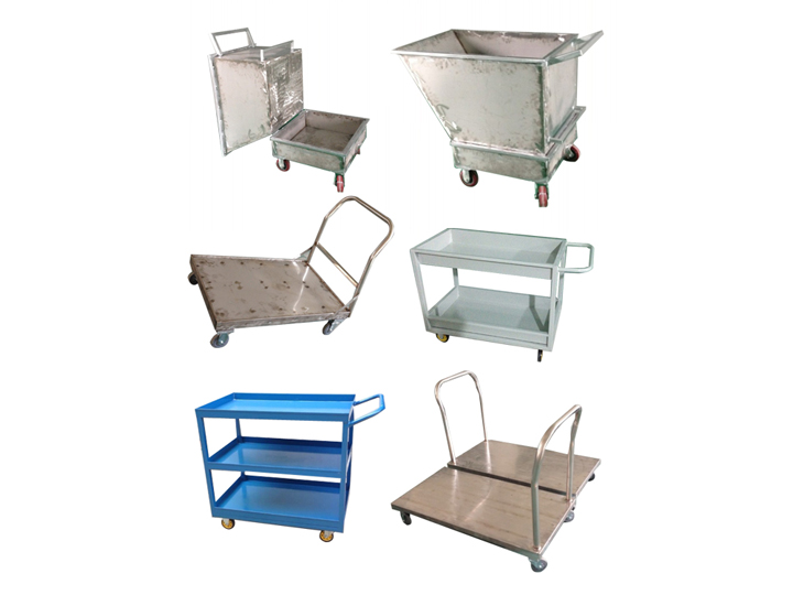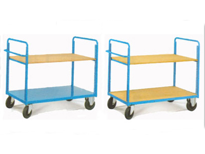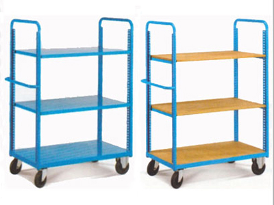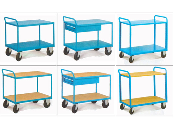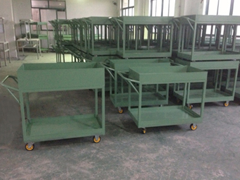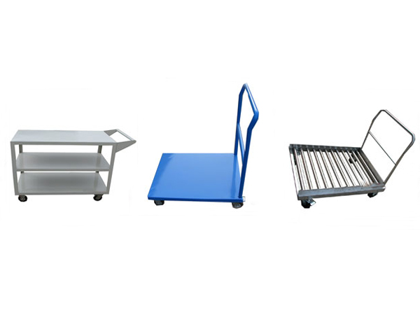 手推車(chē)用于工作車(chē)間載物,分為單層平板手推車(chē)和多層手推車(chē)。多層手推車(chē)有高層和底層之分;手推車(chē)底部設(shè)有輪子,便于移動(dòng)。